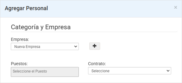 El primer punto a tener presente para el alta, ser谩 seleccionar la Empresa a la que pertenece la persona, luego el Puesto en la estructura del organigrama a la cual pertenece, y luego el tipo de Contrato. En el Puesto, el sistema buscar谩 entre las diferentes Gerencias y Sectores para la empresa seleccionada.
