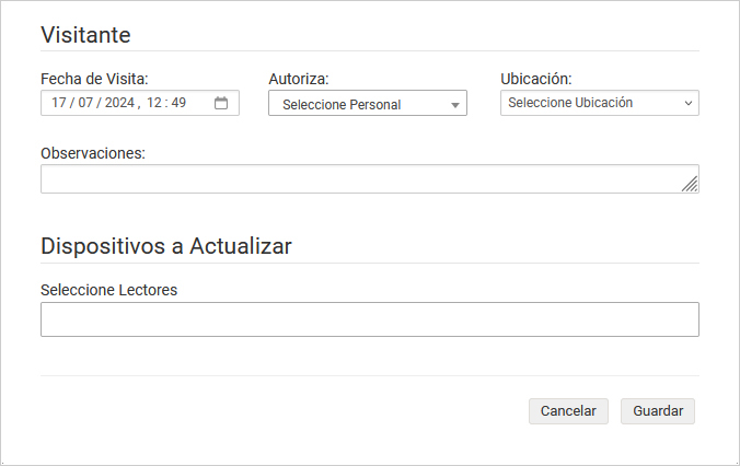 Al pie del formulario, se pueden seleccionar los lectores a asignar para permitir el acceso del nuevo activo generado a partir del proceso de alta de una nueva persona.