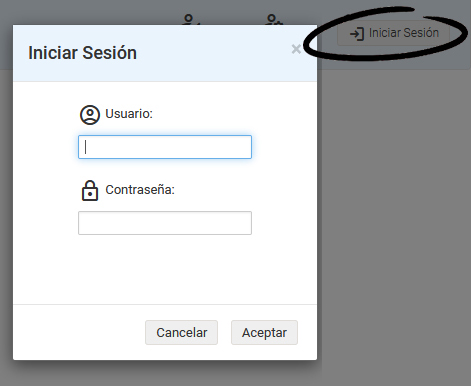 Se ingresa al sistema pulsando en Iniciar Sesión con los datos proporcionados por el administrador del sistema: usuario y contraseña. Una vez ingresado, el acceso a las opciones del menú dependerá del perfil asignado al usuario. Si se ha olvidado el usuario o la contraseña proporcionada, deberá ponerse en contacto con soporte de Ticket de Soporte - AccessMan