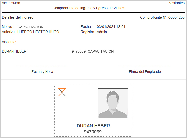 Tambi茅n cada registro en la tabla de Visitantes posee el bot贸n Ver Comprobante de Ingreso o Egreso en la columna Acciones. Esta funcionalidad abre una nueva ventana o pesta帽a en el navegador web con los datos para impresi贸n del comprobante de visita y la credencial del visitante.